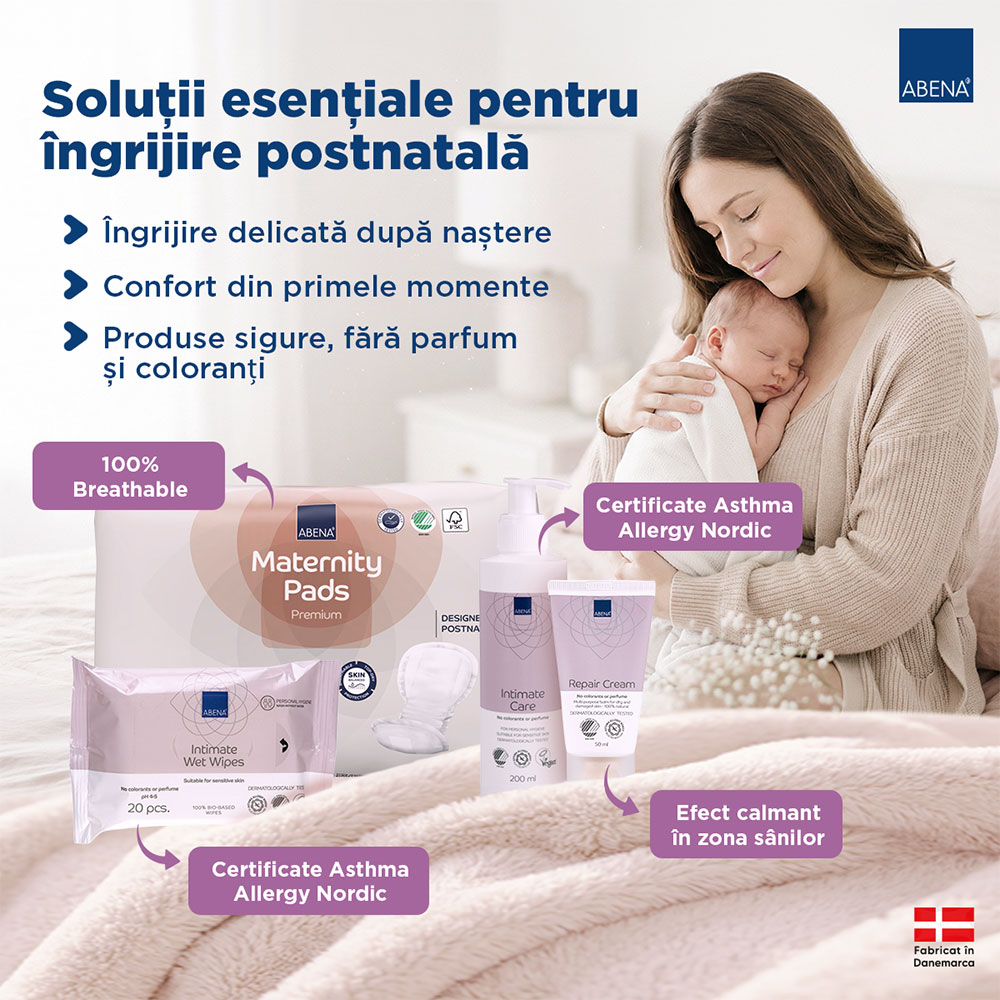 Pentru a răspunde acestor nevoi specifice, Abena a dezvoltat gama MomRange, o colecție dedicată îngrijirii femeilor în timpul sarcinii și mai ales după naștere, când pielea devine mai sensibilă, iar cerințele de igienă și protecție se modifică semnificativ. Produsele sunt concepute pentru a reduce disconfortul asociat perioadei postnatale, de la sensibilitatea zonei intime până la reactivitatea cutanată, permițând mamei să se concentreze asupra interacțiunii cu bebelușul.