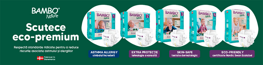 Scutecele Bambo Nature, fabricate în Danemarca, sunt special concepute pentru pielea sensibilă a bebelușilor. Sunt fără clor, parfum, parabeni și au un design ergonomic, ultra-delicat. În plus, modelul destinat nou-născuților include o porțiune decupată în zona buricului, ceea ce permite o vindecare mai rapidă și fără iritații.